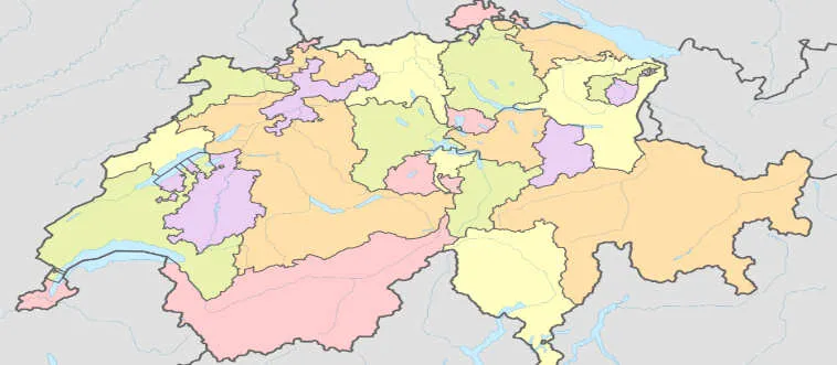 Which European country is divided into 26 cantons?