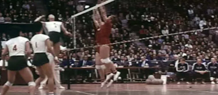 What year saw the first official volleyball match at the Olympics?
