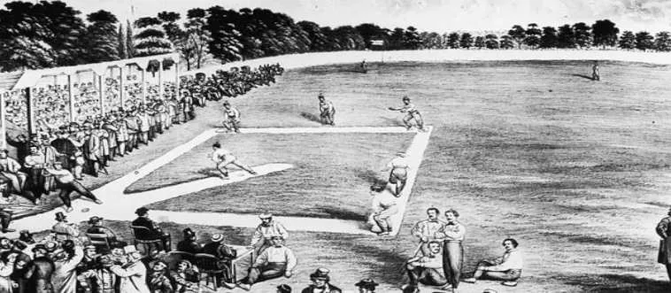 What decade saw the first recorded baseball game with nine innings?