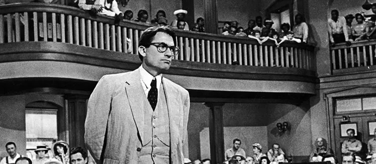 Which film stars Gregory Peck as a noble lawyer defending an innocent man?